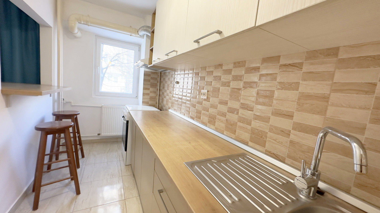Renovată în 2022, locuința este complet mobilată și utilată, gata să te muți imediat, fără alte investiții. Bucătăria este separată și echipată, baia este modernă, iar balconul de aproape 5 mp adaugă un plus de aer și funcționalitate.