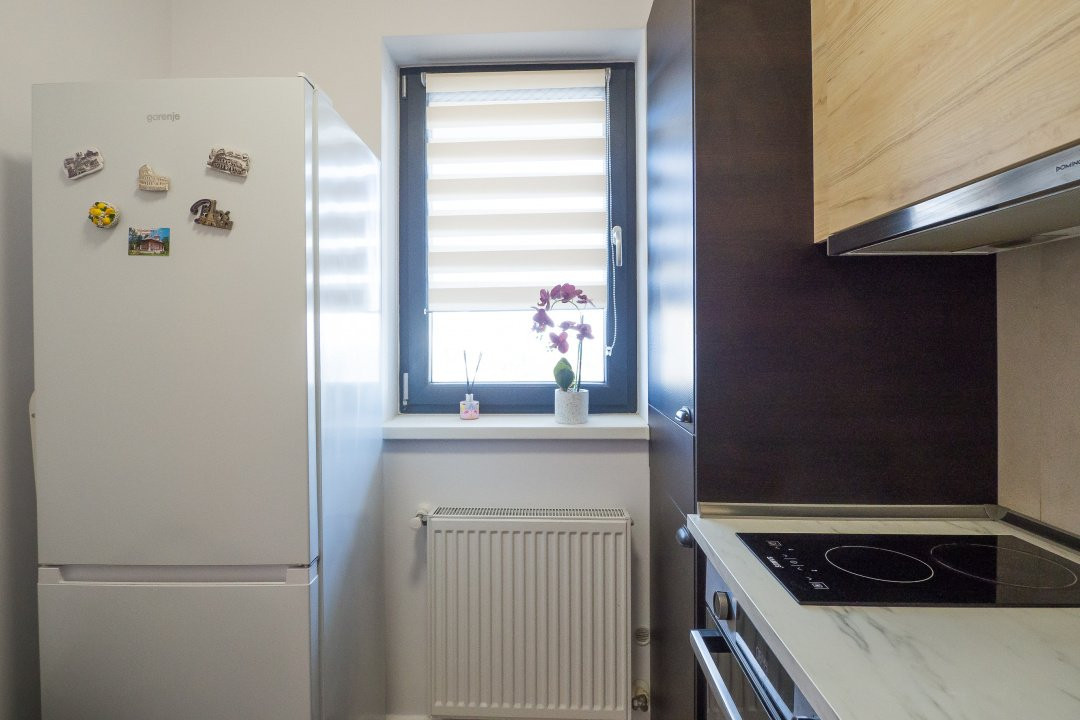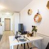 Garsoniera include finisaje de calitate, aer condiționat și o bucătărie utilată modern. Clădirea beneficiază de lifturi moderne (2 lifturi pe scara) și acces securizat.