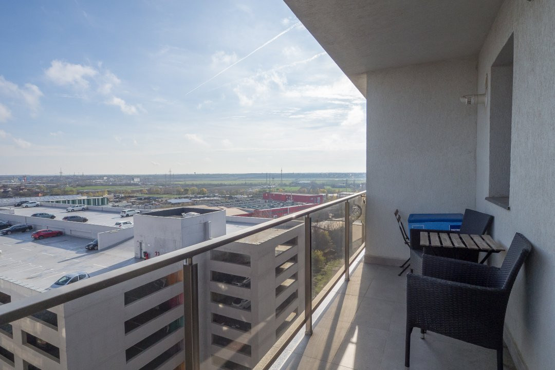 Aceeași oferta este valabila și pentru o garsoniera la etajul 11 în aceeași poziție, cu diferența că balconul este mai mare, pe toată fațada proprietății. Mobilaă și utilată identic. Chiriile percepute sunt identice, respectiv 450E/luna, fără parcare. Fotografiile sunt din garsoniera de la etajul 11.
