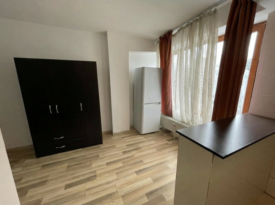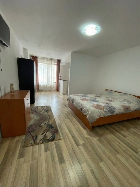 Amplasata la etajul 8 din 10, ofera lumina naturala buna si un plus de intimitate. Spatiul este configurat tip open space,rezultând un spatiu practic si usor de amenajat, dispune de boiler,masina spalat rufe ,frigider,aragaz si tv .