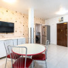 Bucataria mobilata si utilata, tip open - space este inima acestui apartament, locul perfect de stat la povesti cand ajungi acasa, dispune de Tv si o masa de dining pentru 4 persoane.