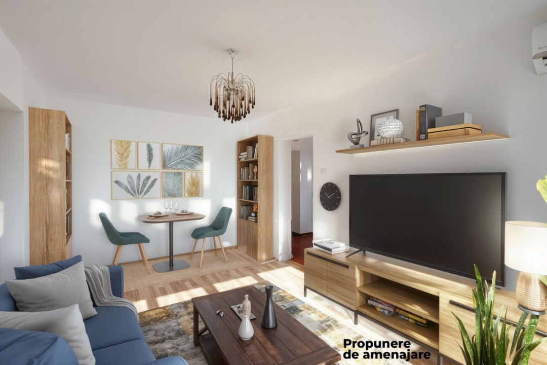 Camerele au suprafetele de 16.64 si 11.65mp. Loggia inchisa este suficient de spatioasa (3,7mp) pentru a-ti putea amenaja acolo un mic birou, sau o zona verde cu plante, numai buna pentru savurat cafeaua de dimineata. Un beneficiu important pentru oricine ar locui acolo, sunt cele doua spatii de depozitare, atat de importante si utile in orice casa, iar investitia in renovare este minima, deoarece peretii sunt intr-o stare foarte buna. Pentru a-ti face o idee de cum poti amenaja apartamentul, te invit sa vezi planul si propunerile de mobilare generate pe calculator.