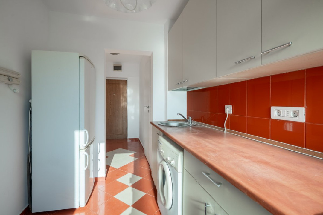 Pe Str. Baiculesti nr. 13 poti achizitiona acest apartament cu 2 camere si o suprafata utila de 50mp. Este situat la etajul 7, iar orientarea catre Sud ii ofera extrem de mult soare si lumina pe intreg parcursul zilei. Chiar vei descoperi ca uneori trebuie sa tragi draperiile! Vederea este frumoasa, catre plopii ce strajuiesc strada.