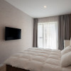 Dormitorul matrimonial (14,7mp) este mobilat cu un pat confortabil, avand baia proprie cu cada. Cea de-a treia camera poate fi birou sau dormitor, deoarece canapeaua se extinde.