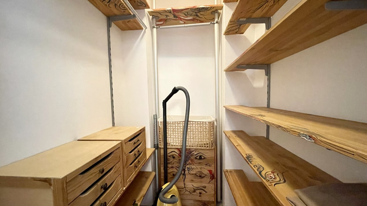 Aveti la dispozitie numeroase locuri de depozitare. Unul dintre dormitoare are un dressing foarte incapator.