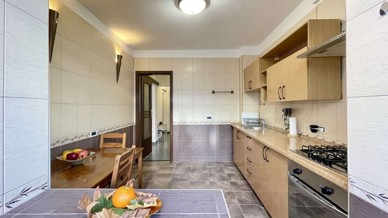 Apartamentul este decomandat, fiind potrivit atat pentru o familie cu copii, cat si pentru persoane care vor sa aiba camera proprie. Fiecare dormitor este mobilat cu pat dublu, iar in sufragerie se gasesc 2 canapele extensibile. Bucataria este spatioasa, oferind locul perfect pentru a gati sau pentru a servi cafeaua de dimineata.