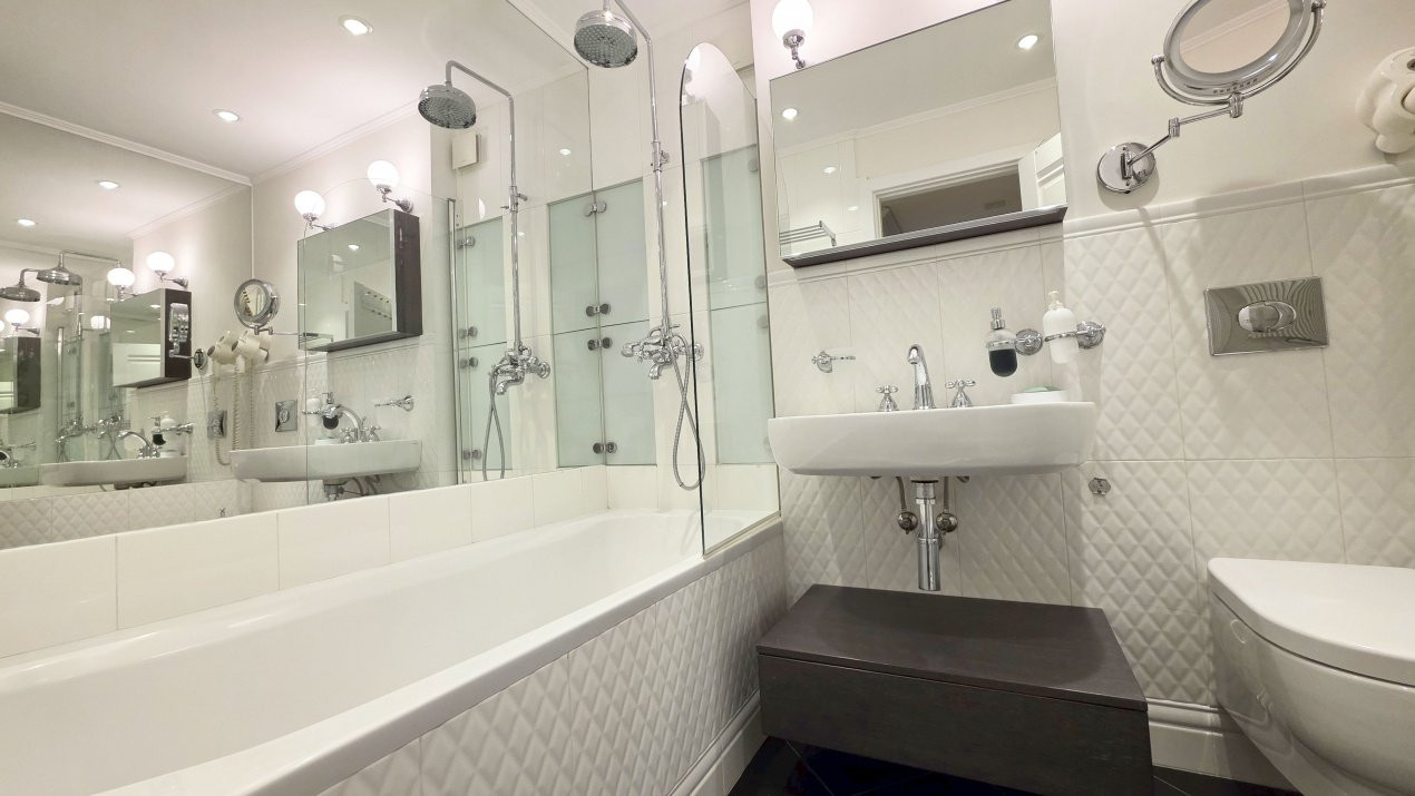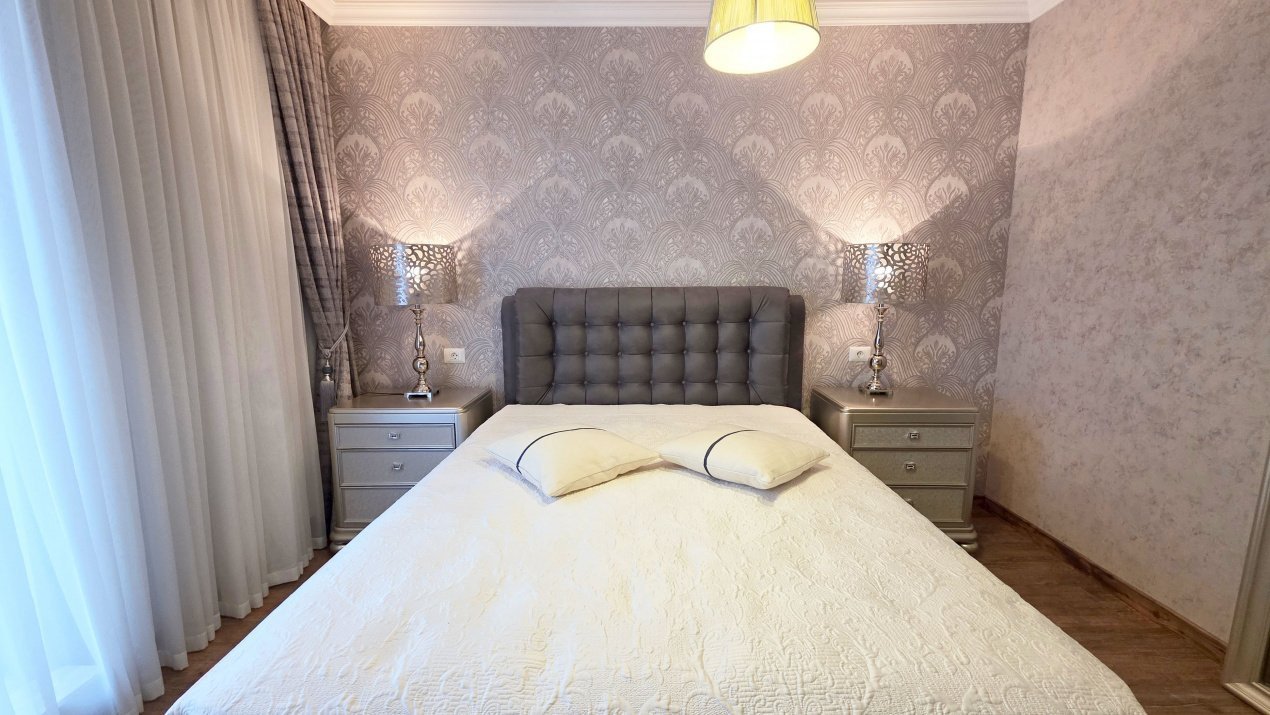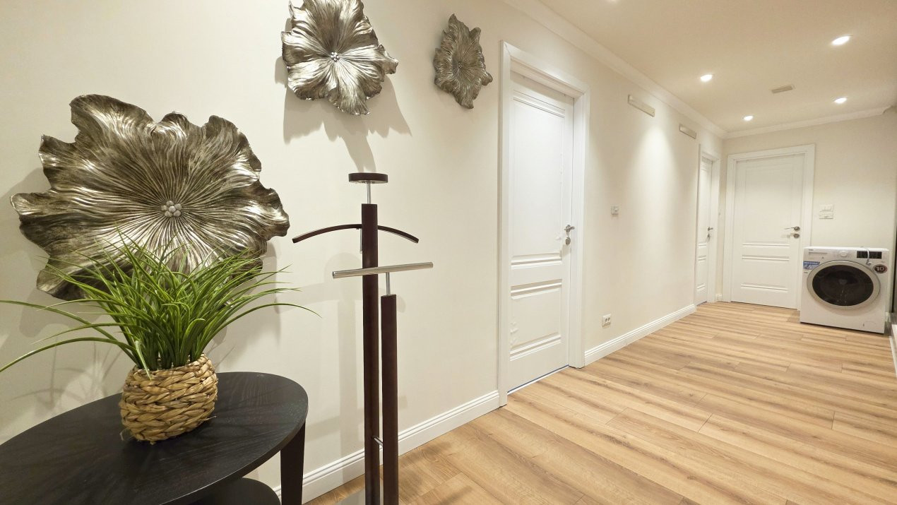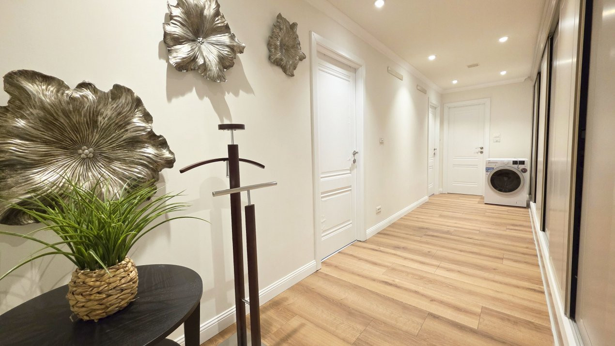 Două dormitoare spatioase si doua bai moderne completeaza aceasta oaza de liniste si eleganta. Holul imens cu dulapuri tip dressing iti asigura spatiu de depozitare si organizare perfecta, in timp ce bucataria mobilata si utilata complet te inspira sa creezi cele mai rafinate preparate culinare.