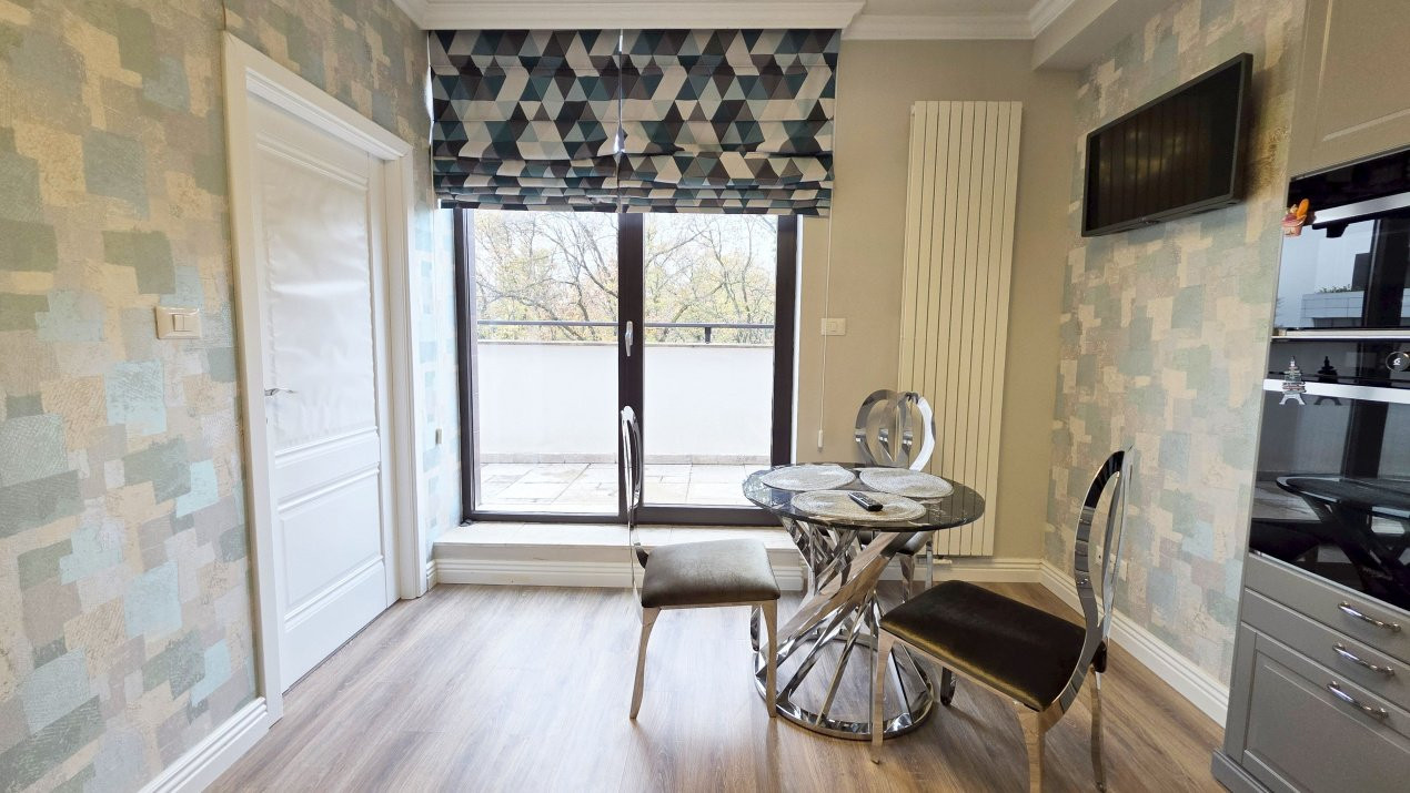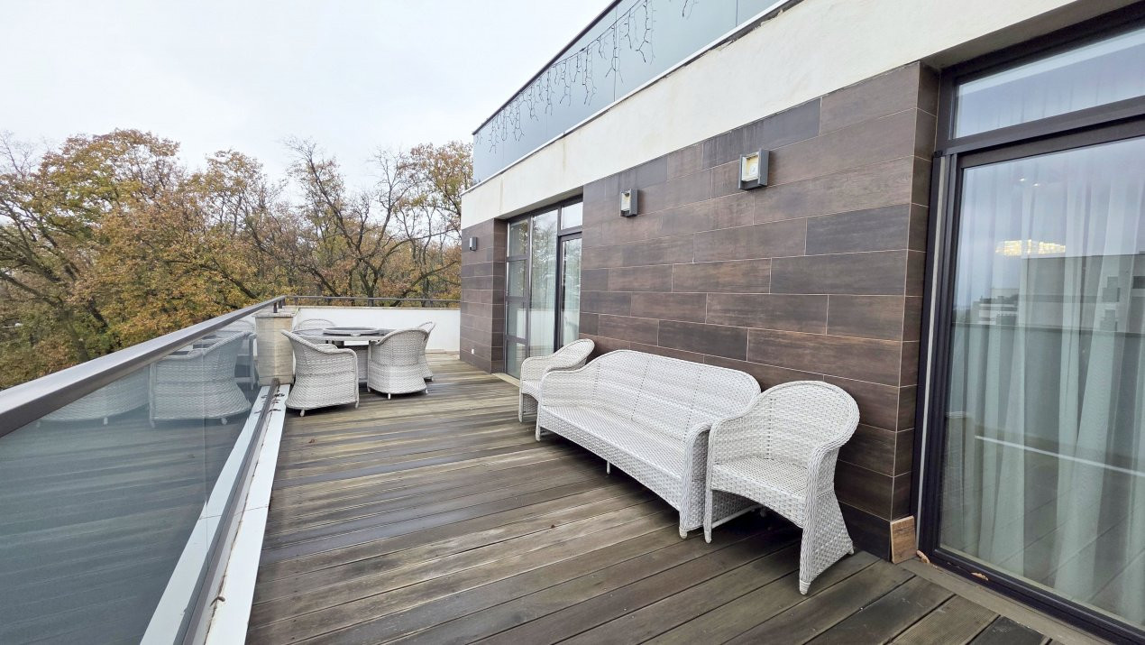 Imagineaza-ti un refugiu de vis, situat la etajul al patrulea al elegantului complex Parcul Privighetorilor din Baneasa, pe Aleea Privighetorilor 85, la doar cativa pasi de gradina Zoologica. Acest apartament superb iti ofera o experienta unica, incarcata de emotie si confort autentic. Livingul generos, luminat natural, se extinde spre o terasă splendida, unde poti admira relaxat frumoasa priveliste spre padure, un adevarat colt de rai în inima naturii.