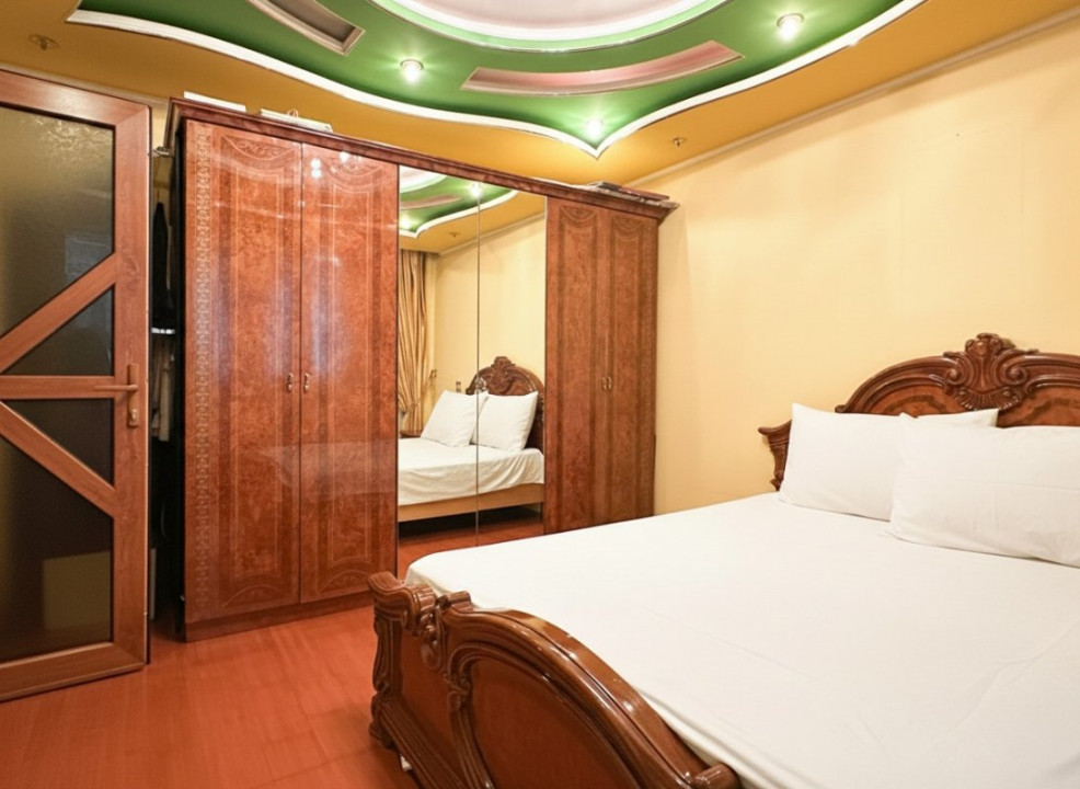 Apartamentul are 62 de metri pătrați utili, decomandat: două dormitoare suficient de generoase pentru paturi duble și dulapuri, un living în care încape masa de familie, o bucătărie spațioasă unde poți să gătești confortabil, nu să te învârți între frigider și aragaz. Spațiile sunt reale, nu optimizate la milimetru ca în blocurile noi unde doar pe hârtie încap lucrurile.