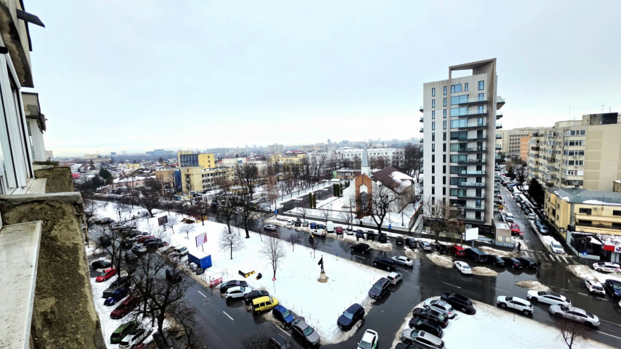 Faptul ca apartamentul este la ultimul etaj al blocului (acoperit in proportie de 50% de spatiile administratiei) nu confera disconfort din punct de vedere al hidroizolatiei iar zgomotul stradal este estompat corespunzator. Privelistea insa face toti banii!