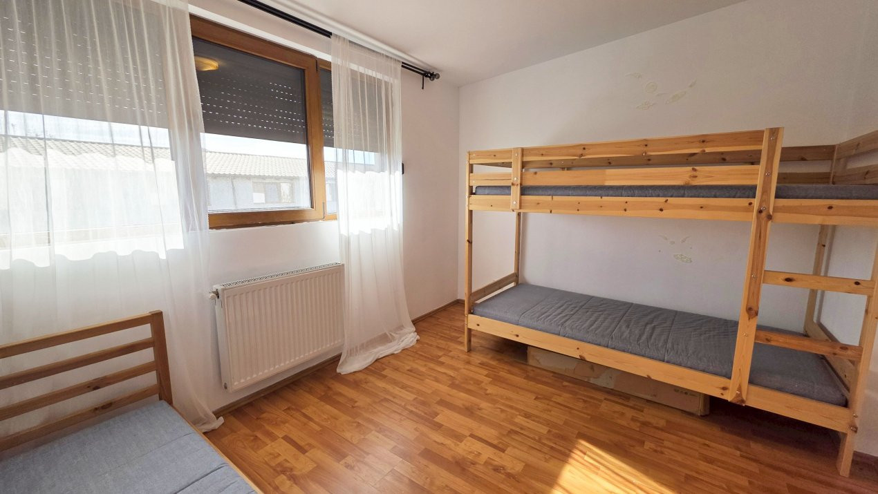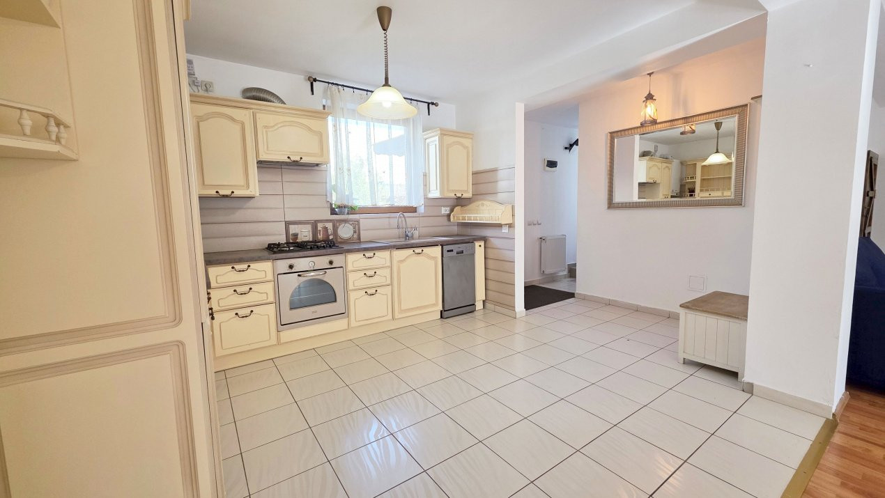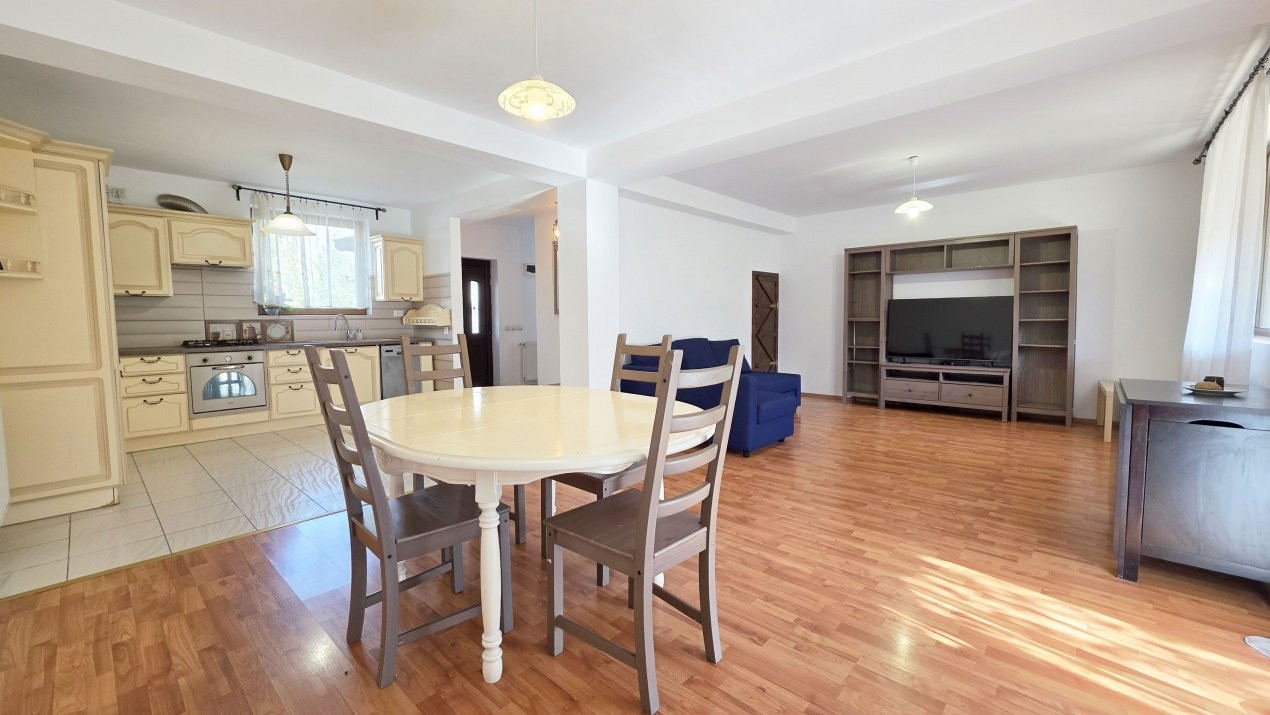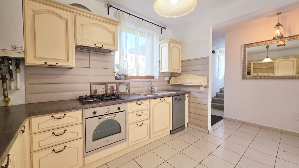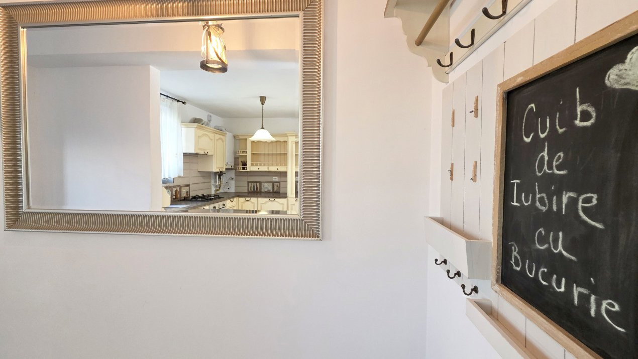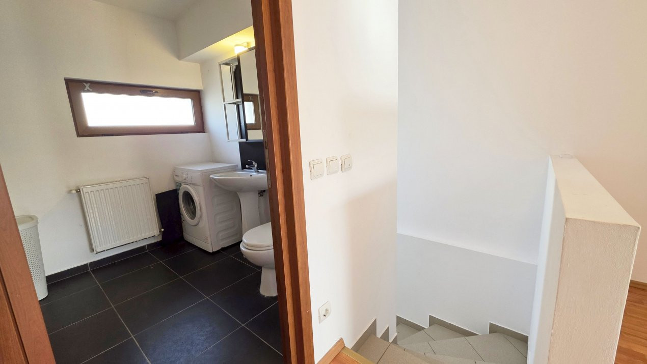 Altfel, casa, pe cat de generoasa si confortabila, este pe atat de intima, atat cat isi doreste orice familie doritoare de liniste si confort sporit. Caci, in completarea livingului imens cu bucatarie deschisa si echipata complet, a dinning-ului si grupului sanitar de la parter, se regasesc la etaj trei dormitoare individuale si o baie, toate in aceeasi nota reconfortanta.