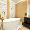 La etaj, zona de noapte este concepută pentru relaxare și intimitate. Dormitorul matrimonial beneficiază de baie proprie și două balcoane ce oferă lumină naturală pe tot parcursul zilei. În continuare, al doilea dormitor este spațios și primitor, deservit de o baie modernă amenajată cu finisaje de calitate superioară.
