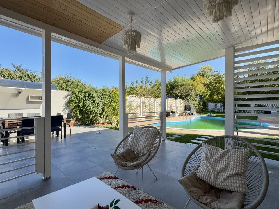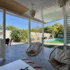 Exteriorul completează perfect confortul interior. O terasă generoasă devine locul ideal pentru mic-dejunuri târzii sau seri liniștite în aer liber, în timp ce piscina privată adaugă un plus de exclusivitate și rafinament, transformând curtea într-un veritabil spațiu de relaxare personal.