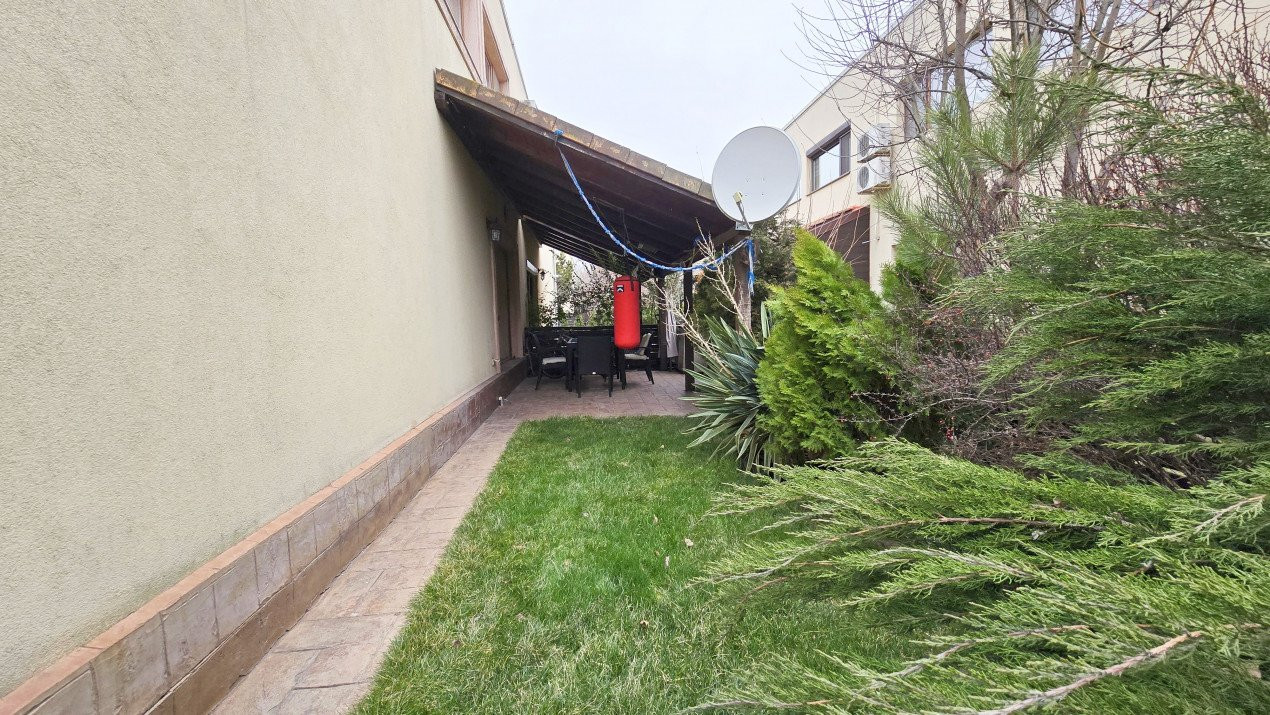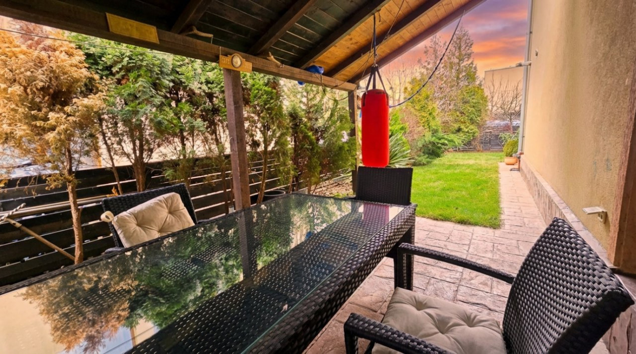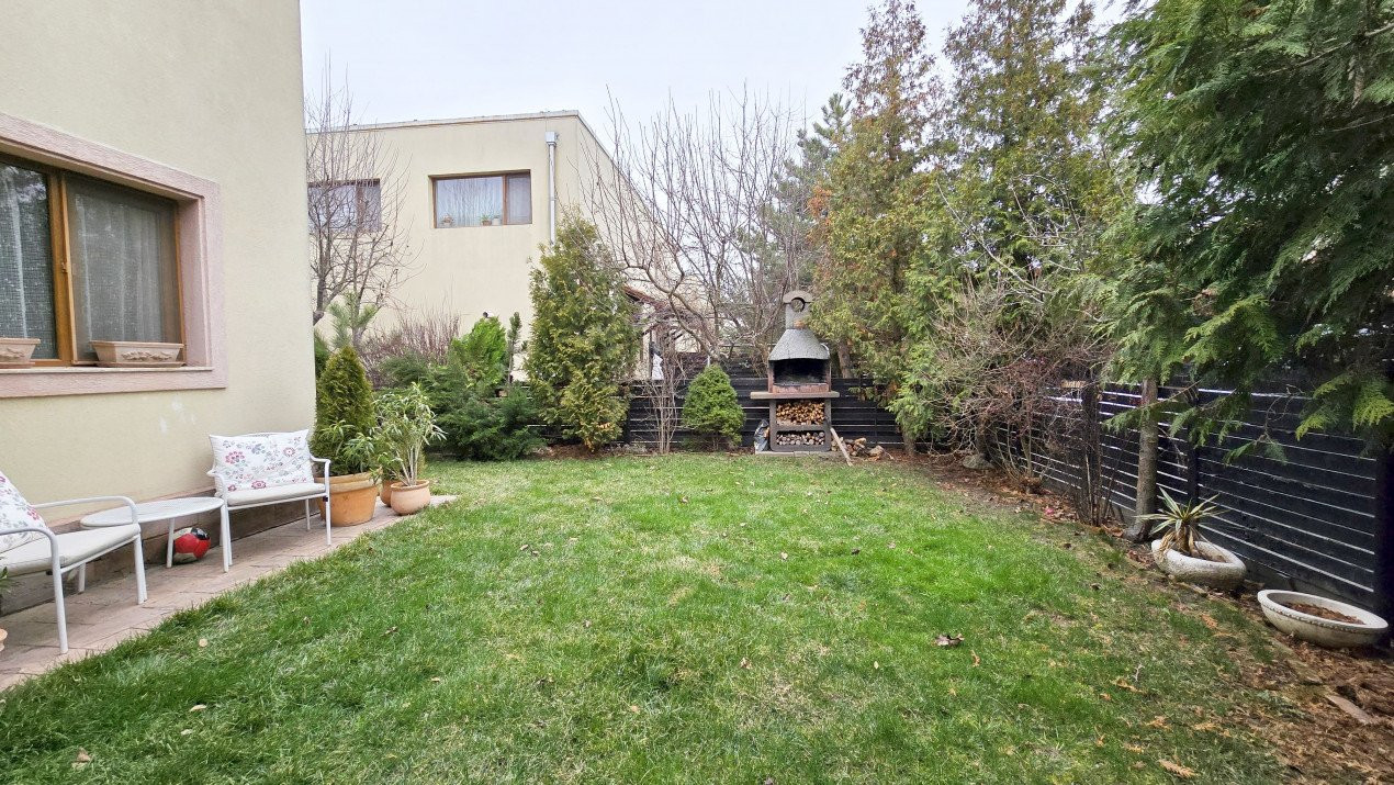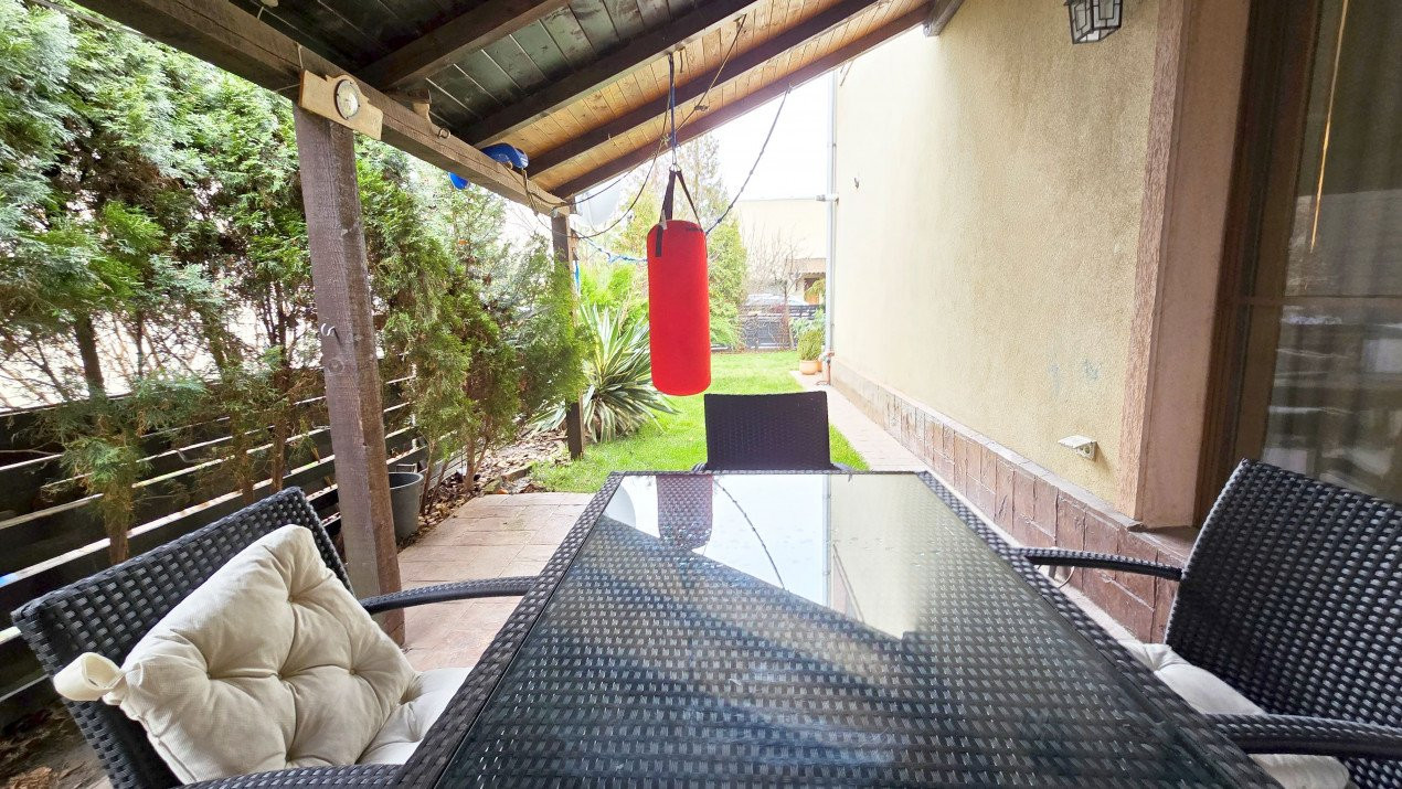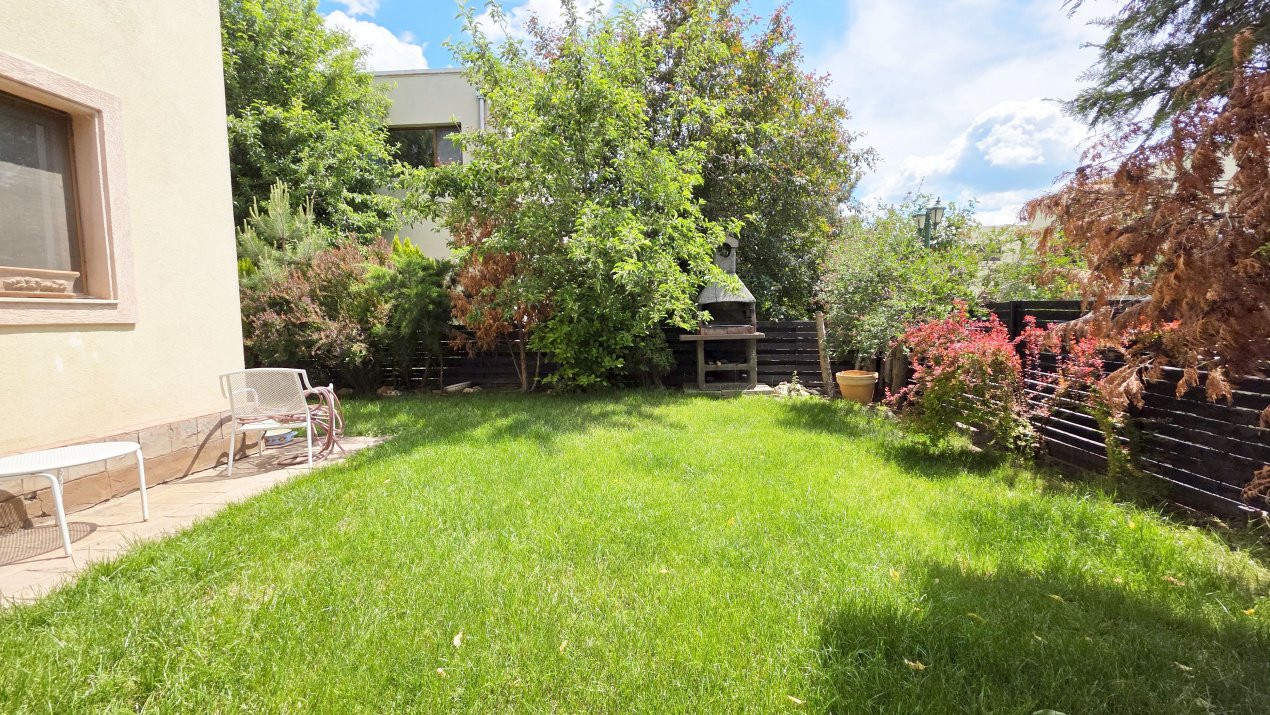 In plus, curtea este o adevarata oaza de relaxare, atat prin existenta terasei acoperite laterale cu acces in si din living, a gratarului amplasat in partea dinspre strada curata si linistita. Si totul se completeaza cu atmosfera tihnita a cartierului locuit de oameni de calitate. Si totul la doar 30 de minute de Piata Unirii.