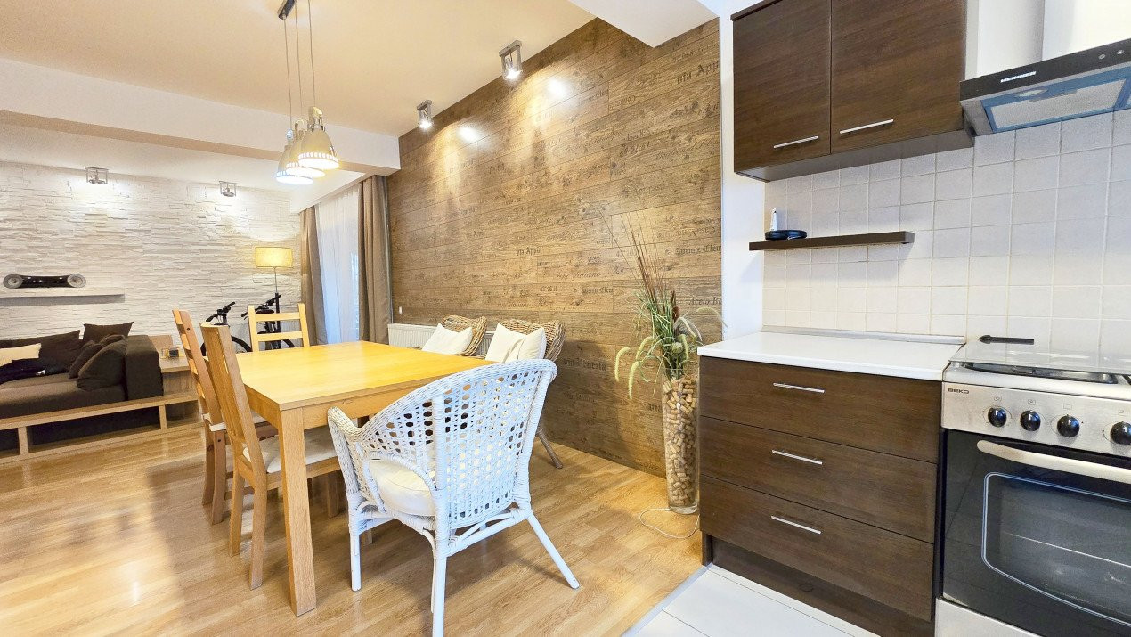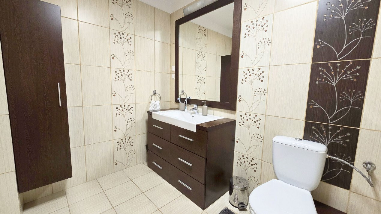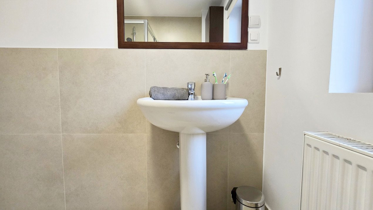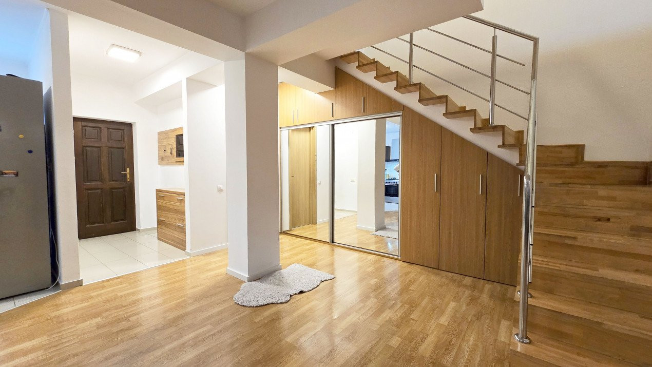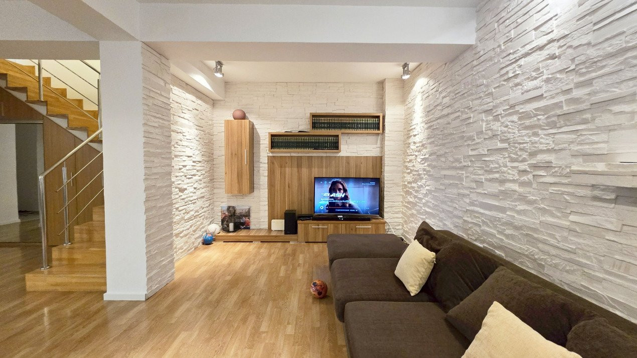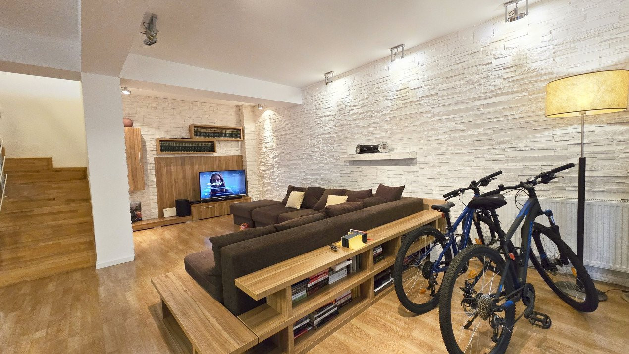 Altfel, casa, pe cat de generoasa si confortabila, este pe atat de intima, atat cat isi doreste orice familie doritoare de liniste si confort sporit. Caci, in completarea livingului imens cu bucatarie deschisa si echipata complet, a dinning-ului si grupului sanitar de la parter, se regasesc la etaj doua dormitoare individuale, o baie si un dormitor matrimonial cu baie proprie, toate in aceeasi nota reconfortanta.