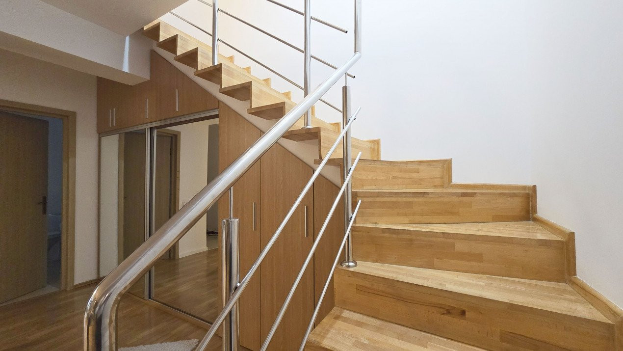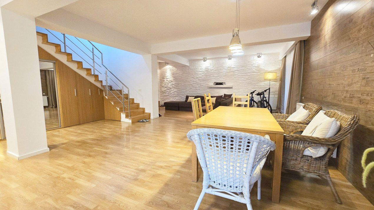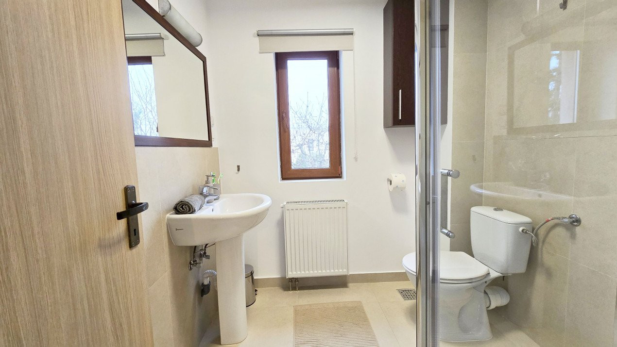 Altfel, casa, pe cat de generoasa si confortabila, este pe atat de intima, atat cat isi doreste orice familie doritoare de liniste si confort sporit. Caci, in completarea livingului imens cu bucatarie deschisa si echipata complet, a dinning-ului si grupului sanitar de la parter, se regasesc la etaj doua dormitoare individuale, o baie si un dormitor matrimonial cu baie proprie, toate in aceeasi nota reconfortanta.