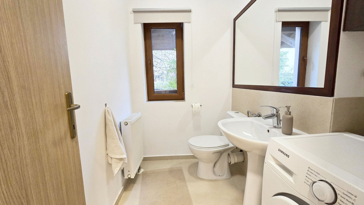 In plus, curtea este o adevarata oaza de relaxare, atat prin existenta terasei acoperite laterale cu acces in si din living, a gratarului amplasat in partea dinspre strada curata si linistita. Si totul se completeaza cu atmosfera tihnita a cartierului locuit de oameni de calitate. Si totul la doar 30 de minute de Piata Unirii.