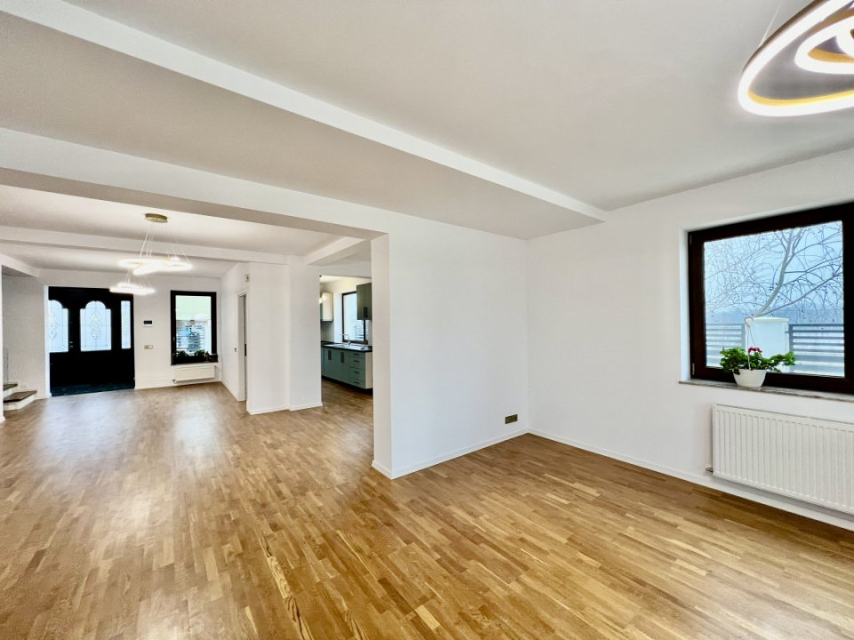 Vă prezentăm spre inchiriere o proprietate deosebită, definită prin spații vitrate largi și o atenție deosebită la executarea finisajelor. Renovarea a fost finalizată în 2026, aflându-se la prima închiriere.