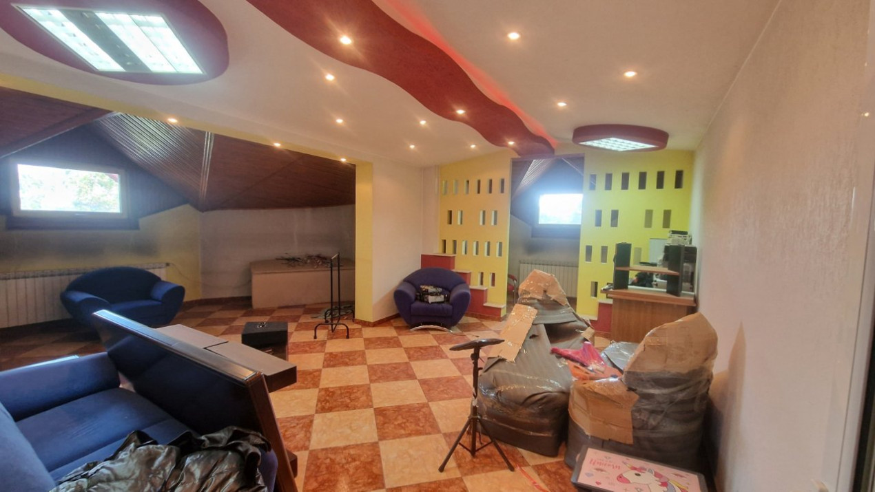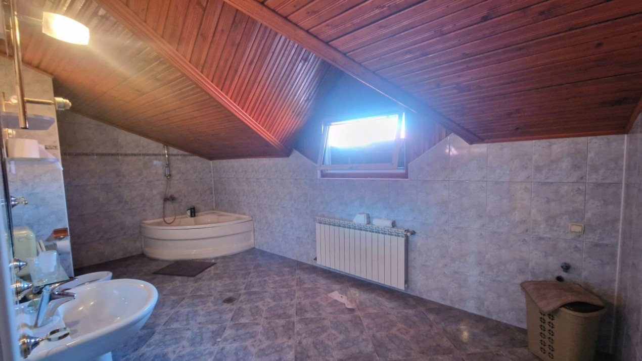 Parter – zonă de zi generoasă și spații funcționale: Living de 49,60 mp – ideal pentru zona de relaxare sau întâlniri de afaceri. Bucătărie spațioasă (23 mp) – complet delimitată, perfectă pentru gătit intensiv. Baie principală (13,83 mp) și o debara adiacentă (5,57 mp) – funcționalitate sporită. Hol de acces (12 mp) – spațios și primitor.Etaj 1 – zona de noapte + spații de depozitare: 2 dormitoare mari: • Dormitor matrimonial: 36,42 mp • Dormitor secundar: 24,14 mp, Baie principală (13,83 mp) + debara suplimentară., Hol de distribuție de 21,70 mp – poate fi utilizat și ca birou sau bibliotecă. Acces direct către două balcoane (2,6 mp și 30,69 mp) – pentru relaxare în aer liber.Etaj 2 – spațiu multifuncțional, ideal pentru lucru, oaspeți sau hobby-uri: Dormitor suplimentar (20,80 mp), Living secundar (21,60 mp) – poate deveni sală de cinema, birou, sală de fitness sau studio creativ. Dressing (5,76 mp), baie (10 mp) și spațiu de depozitare (5,50 mp). Hol central (8,10 mp) – optim pentru zone de tranziție sau loc de citit. Sauna spatioasa , capacitate mare (10 persoane)Ideală pentru:Reședință de familie numeroasă, cu spații largi și zone de intimitate.Sediu de firmă, cabinet notarial, birouri de arhitectură sau consultanță.Coliving de lux, cu zone comune generoase și dormitoare individuale.Avantaje locație:Bulevard Pieptănari – acces rapid către centrul orașului, metrou și mijloace de transport în comun.Apropiere de centre comerciale, școli, clinici și parcuri.Zonă aerisită, cu densitate redusă de construcții și vecinătăți selecte.Alte beneficii:Curte privată de 50 mp – ideală pentru grătar, relaxare sau loc de joacă pentru copii.Terasă spațioasă de 30 mp – perfectă pentru socializare, yoga sau mic dejunuri în aer liber.Compartimentare eficientă – permite atât separarea funcțională (zi/noapte), cât și utilizări mixte (locuire + activitate profesională).Pentru mai multe detalii sau o vizionare, vă rugăm să ne contactați.Această proprietate oferă confort, eleganță și versatilitate – o alegere perfectă pentru cei care își doresc mai mult decât o simplă locuință.Suntem dispusi sa inchirem si pentru gazduirea de muncitori straini !