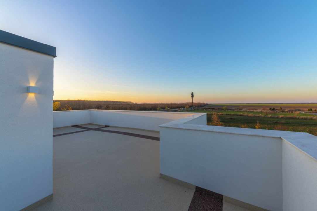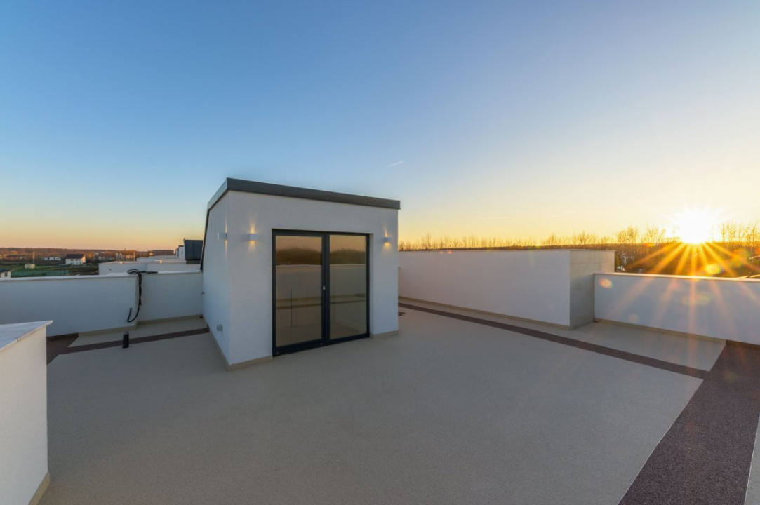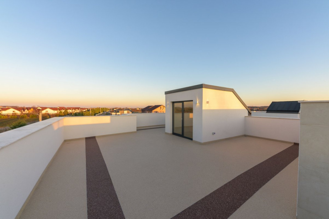 Si… să mai urcăm un nivel! Terasa! Daaa, terasa ta de 76mp! Ia gândește-te cum este să ai o asemenea terasă, de dimensiunile unui apartament generos de 3 camere! Un loc în care te vad doar păsările care zboară pe deasupra. Vrei să faci plajă? Vrei să îți amenajezi un jacuzzi? Vrei un loc în care să-ți strângi prietenii la o petrecere de vară, sub cerul înstelat? Câte case îți oferă un asemenea loc, pe care să-l amenajezi exact cum ai visat?