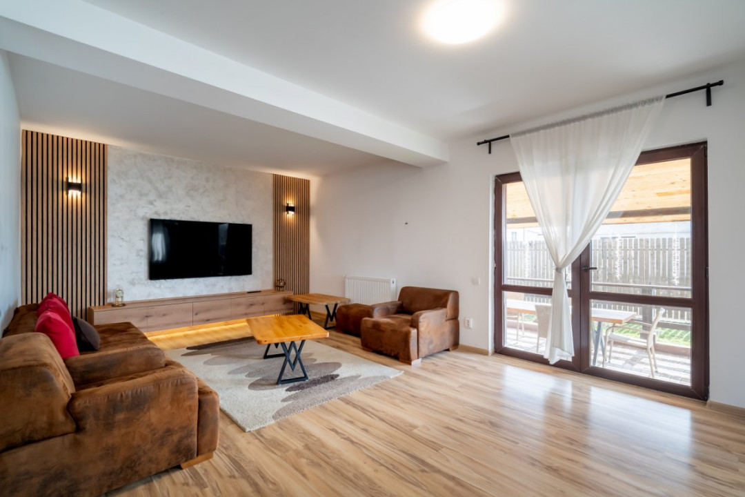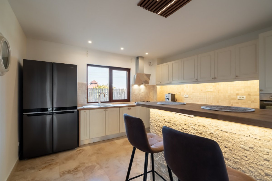 Din imagini se vede foarte clar că vorbim despre o casă deja pusă în valoare: zone exterioare utile, terasă acoperită, volum interior generos, living modern, bucătărie amenajată complet, finisaje calde și actuale ( renovata iintegral interior si exterior in 2025 ) . Practic, cumpărătorul nu achiziționează doar metri pătrați, ci timp câștigat, stres eliminat și o locuință gata de folosință.