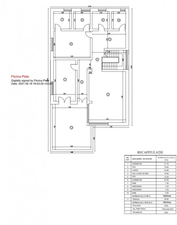 Etaj: Living suplimentar de 75 mp, 3 dormitoare matrimoniale fiecare cu baie și dressing propriu, plus 2 dormitoare pentru oaspeți.