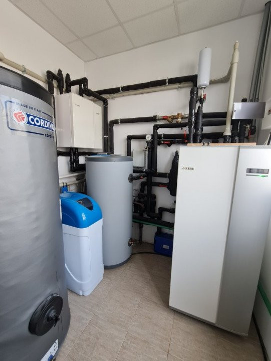 Panouri fotovoltaice de 4,5 kW și pompă de căldură apă-apă NIBE Suedia (15 kW), reducând semnificativ costurile de utilități.