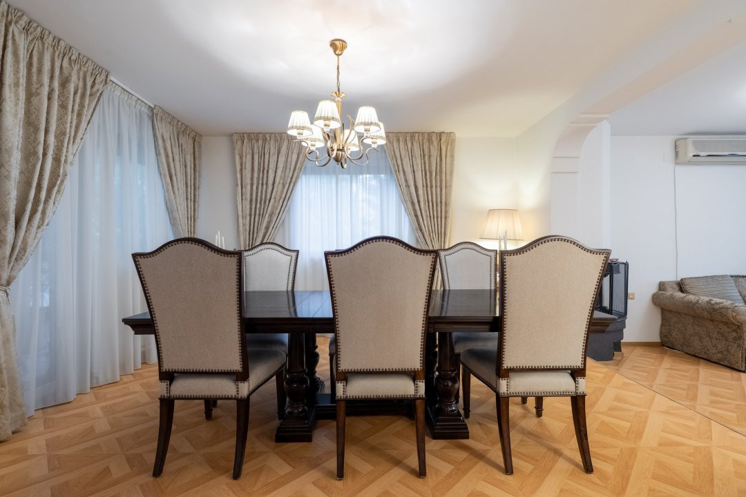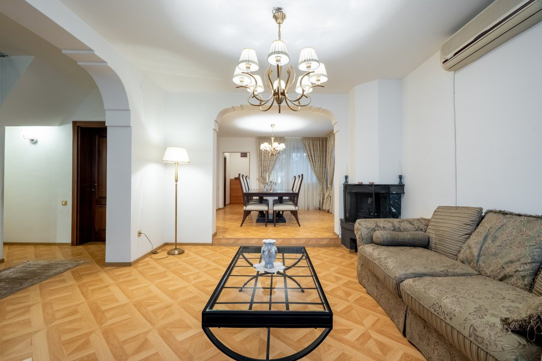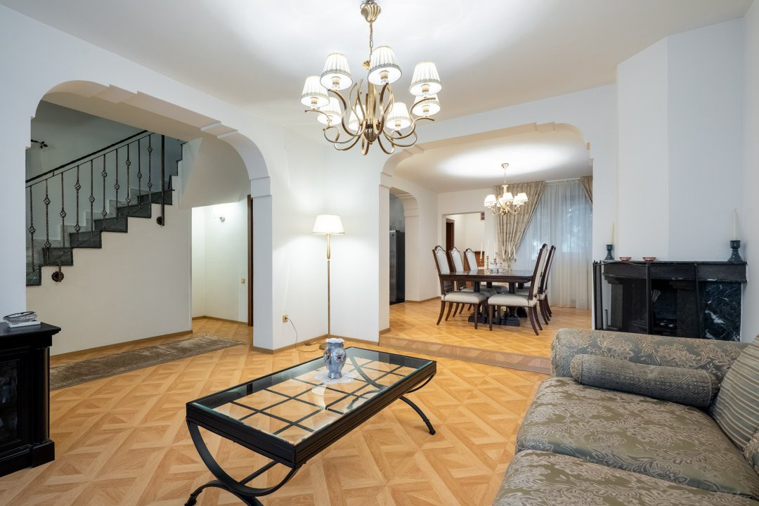 Living amplu și luminos, cu șemineu autentic și zonă de dining, locul perfect pentru seri relaxante în familie sau pentru a primi invitați.