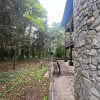 Curtea generoasă, cu o grădină bine întreținută, pomi și copaci înalți, creează o atmosferă idilică și relaxantă.
