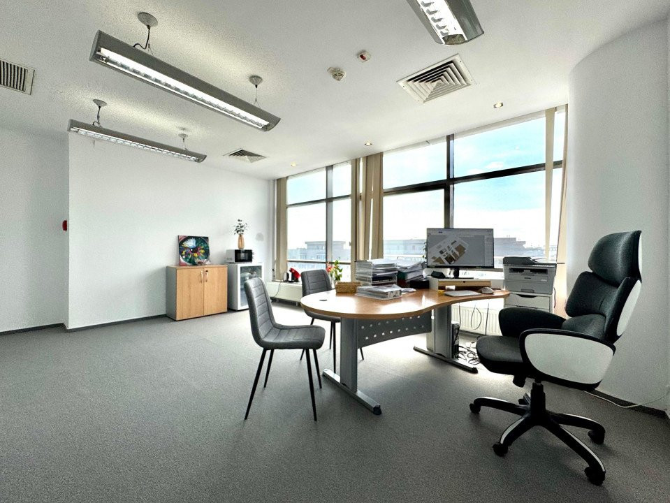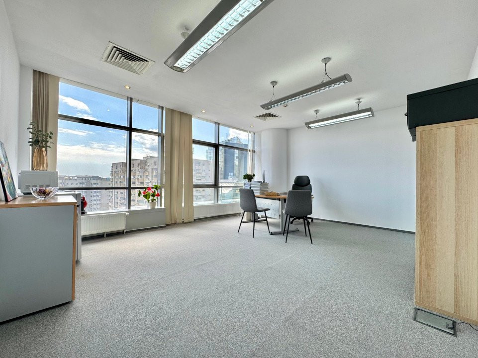 Spațiul de birouri se află la etajul 1, dispune de o cameră având suprafața utilă de 23.8 mp la care se adaugă spațiile comune. Spațiul are acces la doua grupuri sanitare comune.
