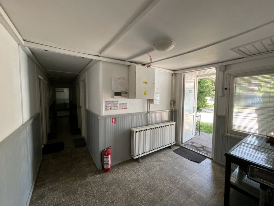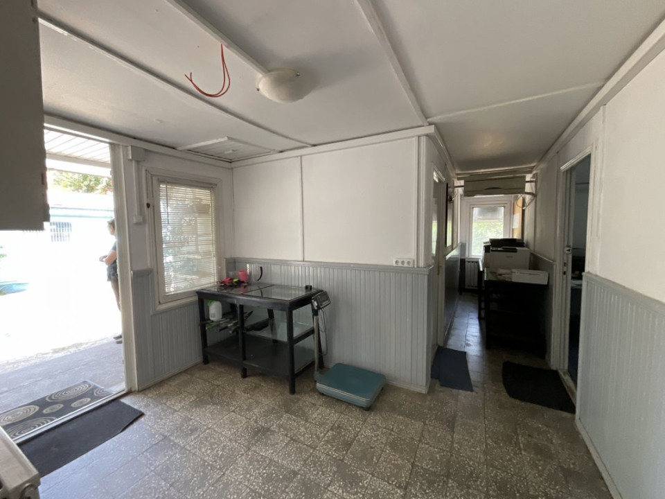 Clădire birouri – 166 mp: situată pe parter, compusă din 6 camere, spațiu tehnic și grup sanitar.