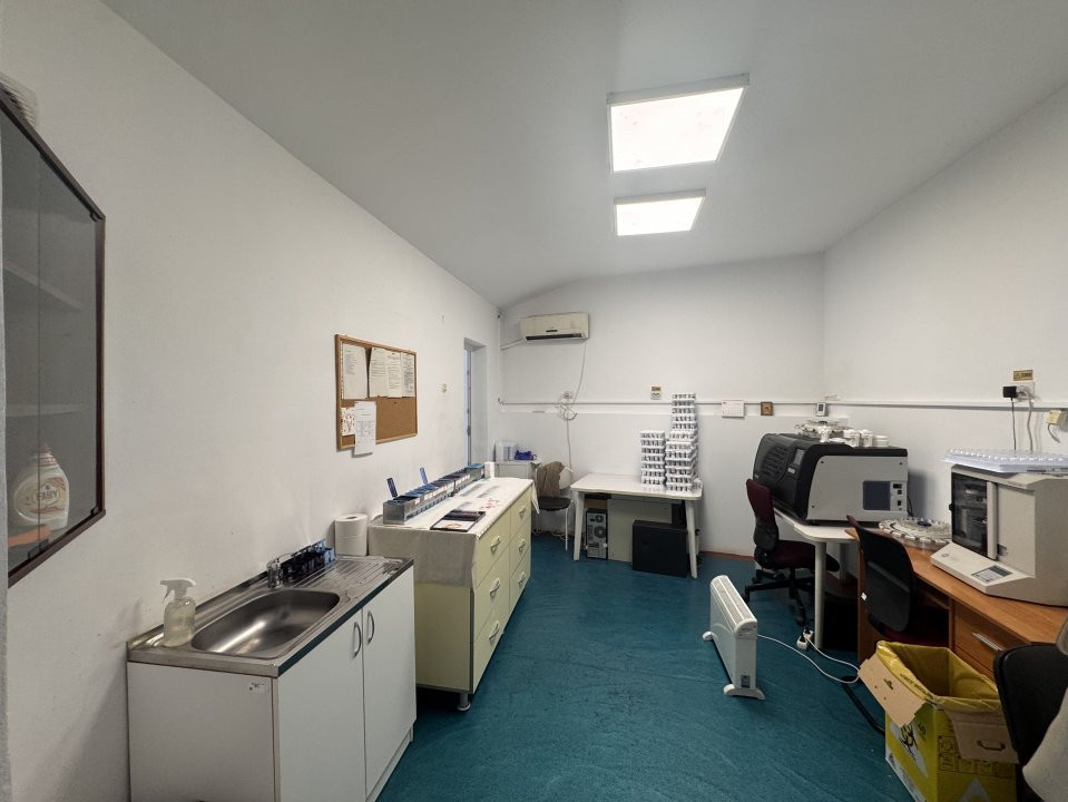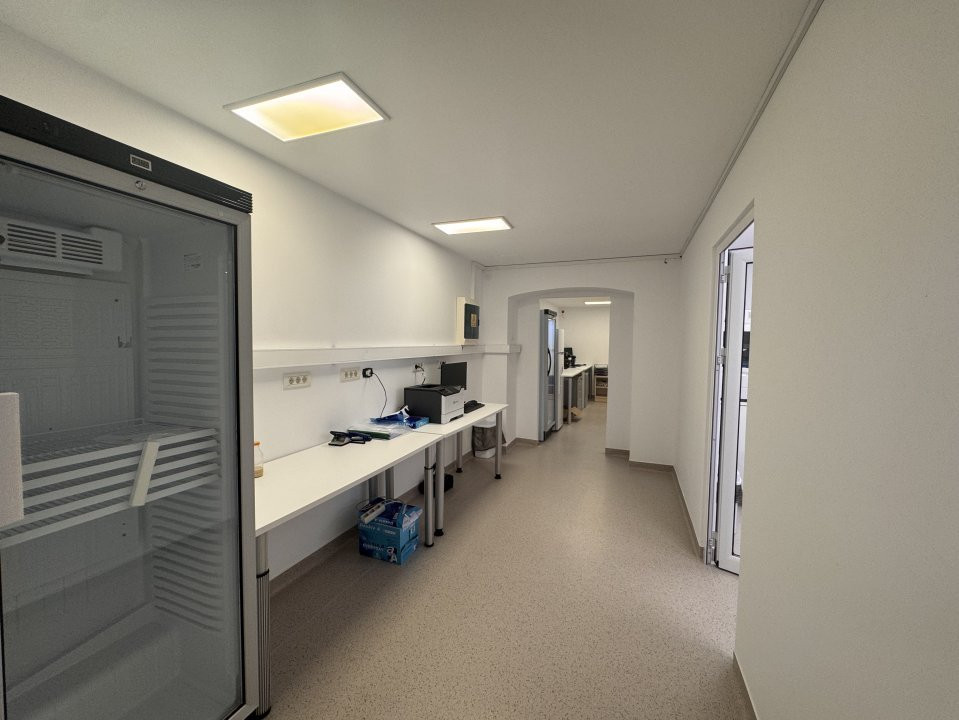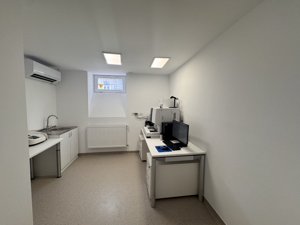 Demisol (137,85 mp): lumină naturală, compartimentare pentru cabinete, laborator, etc.