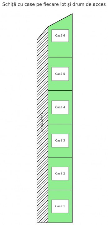 📦 Lotizat în 6 parcele (între 600 și 800 mp fiecare)