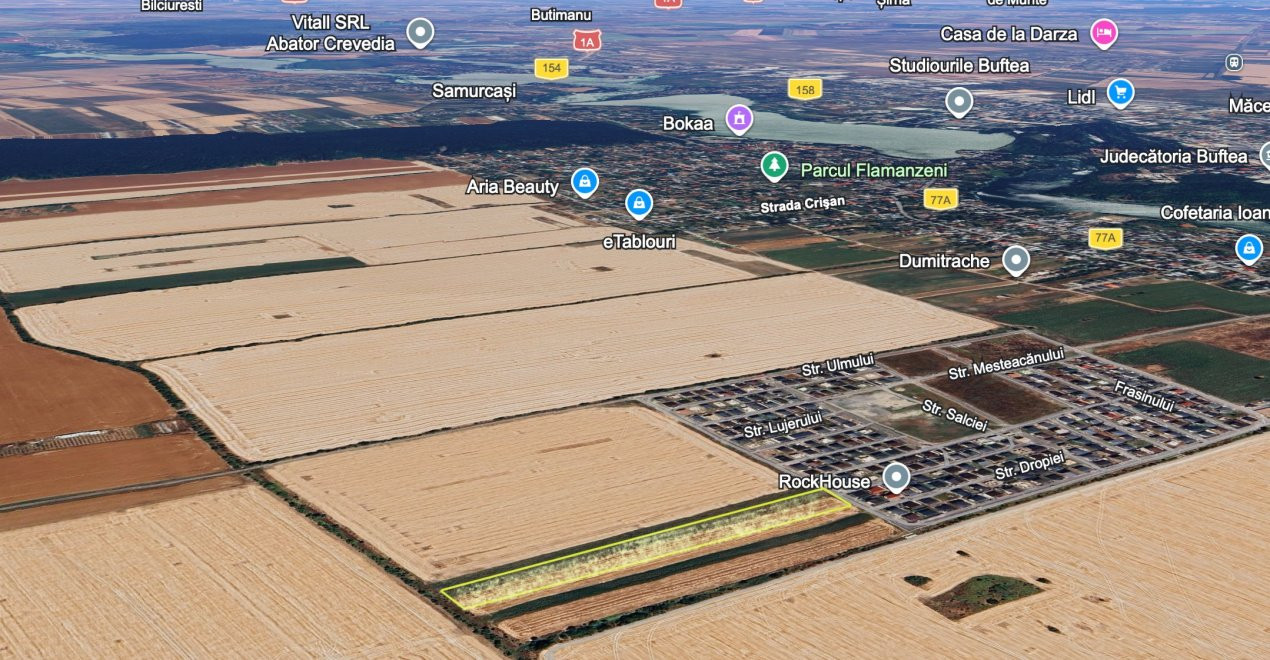 Intravilan | 13124 mp | front 44,5 m | Toate utilitățile | Buftea - Tineretului
